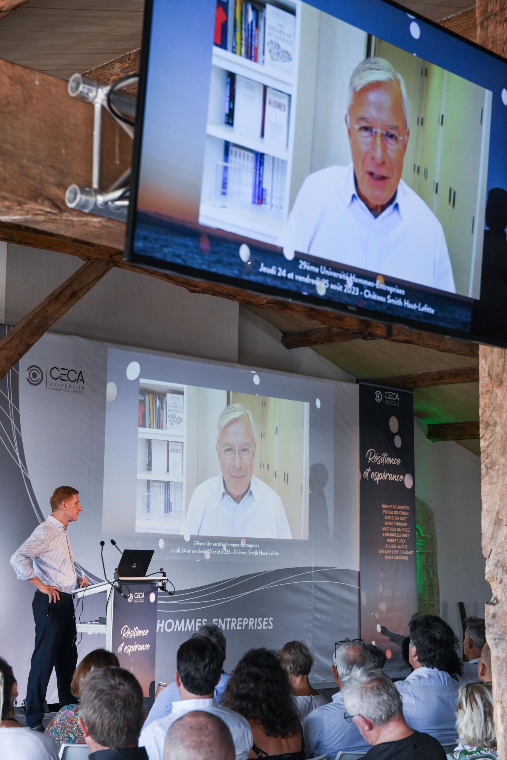 Pascal BRUCKNER Dorine BOURNETON HUBERT JOLY Melanie LEVY THIEBAULT Christian CLOT Boris Cyrulnik Père Matthieu DAUCHEZ Emmanuelle DUEZ Olivier LAJOUS Sonia Mabrouk Enquête réalisée lors de l’édition 2023 auprès de 108 participants. L’Université Hommes-Entreprises : un évènement particulièrement apprécié des participants : 99.1% ont déclaré que cette édition correspondait à leurs attentes (et mieux que prévu pour 63.9%) 88.4% ont apprécié l’édition digitale 96.3% ont considéré que l’édition 2023 avait une valeur ajoutée par rapport à leurs préoccupations actuelles. … qui influe sur le management des participants : 73.1% des participants considèrent que cet évènement a une influence sur leur management ou sur leur organisation. Les médias en parlent Témoignages « J’ai passé deux jours intéressants, instructifs, pleins de belles surprises et de rencontres. Pour tout cela, MERCI !! Je vous dis donc à l’année prochaine car il est toujours bon de prendre du temps, d’autant que le lieu est magique !! Merci encore aussi pour toutes ces valeurs que vous transmettez » Laurent Rouvière « L’événement était comme d’habitude une vraie réussite. J’en suis repartie reboostée, remplie de joie avec beaucoup de choses positives à partager avec mes équipes, mon entourage et toutes les personnes que je croiserai tout au long de mon existence. J’y ai également rencontré de belles personnes et cela fait très plaisir. » Marie-Claire Kakpotia Moraldo « Merci et bravo à toute l’équipe pour cette remarquable organisation. C’était ma 1ère participation. J’y ai trouvé beaucoup de ressources, découvert et entendu de sacrés intervenants et réalisé beaucoup de rencontres et d’échanges passionnants. Comptez sur ma présence l’année prochaine ☺ ! » Ludovic Fauvarque « Ces conférences procurent des émotions qu’on ne n’imagine pas. Elles poussent à prendre le temps de réfléchir sur des sujets essentiels. Elles permettent de rencontrer des personnes tellement inspirantes. » Mélanie Drutel « Conférences et interventions réellement inspirante, qui est arrivée « au bon moment » dans ma vie » Mélanie Conges « Je ne connaissais pas le format puisqu’il s’agissait d’une première pour moi. Les interactions avec les conférenciers sont géniales, la proximité avec les membres également. En tant que manager, je ressors avec beaucoup d’informations qui vont me servir et je vous en remercie » Jimmy Salama Galerie de photos AG-1005 AG-1167 AG-1182 AG-1231 AG-1261 AG-1284 AG-1438 AG-1491 AG-1499 AG-1661 AG-1714 AG-1960 AG-2090 AG-2263 AG-2283 AG-2561 AG-2602 AG-2675 AG-3114 AG-3137 AG-3269 AG-3300 AG-3321 AG-3376 AG-3448 AG-3559 AG-3748 AG-4385 AG-4479