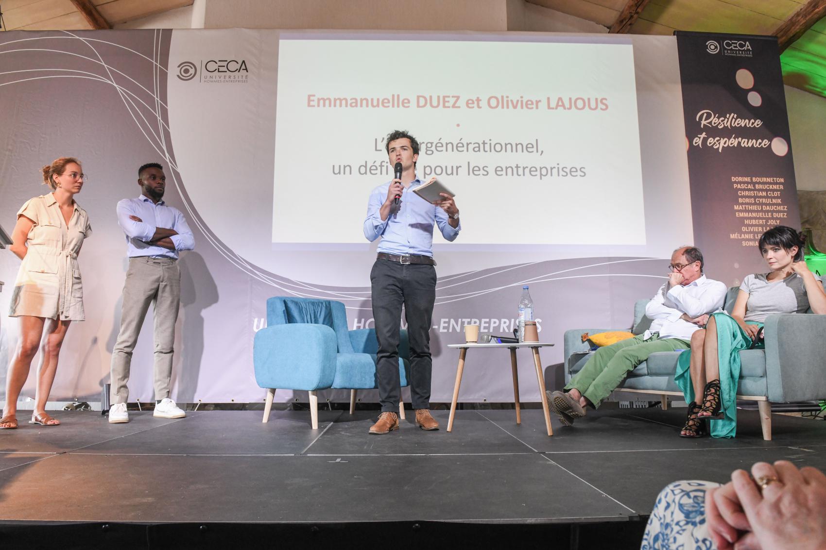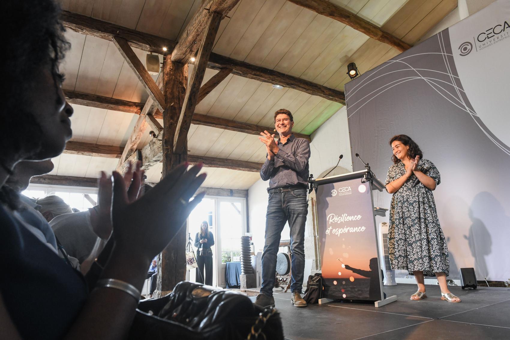 Boris Cyrulnik Père Matthieu DAUCHEZ Emmanuelle DUEZ Olivier LAJOUS Sonia Mabrouk Enquête réalisée lors de l’édition 2023 auprès de 108 participants. L’Université Hommes-Entreprises : un évènement particulièrement apprécié des participants : 99.1% ont déclaré que cette édition correspondait à leurs attentes (et mieux que prévu pour 63.9%) 88.4% ont apprécié l’édition digitale 96.3% ont considéré que l’édition 2023 avait une valeur ajoutée par rapport à leurs préoccupations actuelles. … qui influe sur le management des participants : 73.1% des participants considèrent que cet évènement a une influence sur leur management ou sur leur organisation. Les médias en parlent Témoignages « J’ai passé deux jours intéressants, instructifs, pleins de belles surprises et de rencontres. Pour tout cela, MERCI !! Je vous dis donc à l’année prochaine car il est toujours bon de prendre du temps, d’autant que le lieu est magique !! Merci encore aussi pour toutes ces valeurs que vous transmettez » Laurent Rouvière « L’événement était comme d’habitude une vraie réussite. J’en suis repartie reboostée, remplie de joie avec beaucoup de choses positives à partager avec mes équipes, mon entourage et toutes les personnes que je croiserai tout au long de mon existence. J’y ai également rencontré de belles personnes et cela fait très plaisir. » Marie-Claire Kakpotia Moraldo « Merci et bravo à toute l’équipe pour cette remarquable organisation. C’était ma 1ère participation. J’y ai trouvé beaucoup de ressources, découvert et entendu de sacrés intervenants et réalisé beaucoup de rencontres et d’échanges passionnants. Comptez sur ma présence l’année prochaine ☺ ! » Ludovic Fauvarque « Ces conférences procurent des émotions qu’on ne n’imagine pas. Elles poussent à prendre le temps de réfléchir sur des sujets essentiels. Elles permettent de rencontrer des personnes tellement inspirantes. » Mélanie Drutel « Conférences et interventions réellement inspirante, qui est arrivée « au bon moment » dans ma vie » Mélanie Conges « Je ne connaissais pas le format puisqu’il s’agissait d’une première pour moi. Les interactions avec les conférenciers sont géniales, la proximité avec les membres également. En tant que manager, je ressors avec beaucoup d’informations qui vont me servir et je vous en remercie » Jimmy Salama Galerie de photos AG-1005 AG-1167 AG-1182 AG-1231 AG-1261 AG-1284 AG-1438 AG-1491 AG-1499 AG-1661 AG-1714 AG-1960 AG-2090 AG-2263 AG-2283 AG-2561 AG-2602 AG-2675 AG-3114 AG-3137 AG-3269 AG-3300 AG-3321 AG-3376 AG-3448 AG-3559 AG-3748 AG-4385 AG-4479