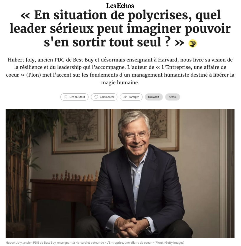 HUBERT JOLY Melanie LEVY THIEBAULT Christian CLOT Boris Cyrulnik Père Matthieu DAUCHEZ Emmanuelle DUEZ Olivier LAJOUS Sonia Mabrouk Enquête réalisée lors de l’édition 2023 auprès de 108 participants. L’Université Hommes-Entreprises : un évènement particulièrement apprécié des participants : 99.1% ont déclaré que cette édition correspondait à leurs attentes (et mieux que prévu pour 63.9%) 88.4% ont apprécié l’édition digitale 96.3% ont considéré que l’édition 2023 avait une valeur ajoutée par rapport à leurs préoccupations actuelles. … qui influe sur le management des participants : 73.1% des participants considèrent que cet évènement a une influence sur leur management ou sur leur organisation. Les médias en parlent Témoignages « J’ai passé deux jours intéressants, instructifs, pleins de belles surprises et de rencontres. Pour tout cela, MERCI !! Je vous dis donc à l’année prochaine car il est toujours bon de prendre du temps, d’autant que le lieu est magique !! Merci encore aussi pour toutes ces valeurs que vous transmettez » Laurent Rouvière « L’événement était comme d’habitude une vraie réussite. J’en suis repartie reboostée, remplie de joie avec beaucoup de choses positives à partager avec mes équipes, mon entourage et toutes les personnes que je croiserai tout au long de mon existence. J’y ai également rencontré de belles personnes et cela fait très plaisir. » Marie-Claire Kakpotia Moraldo « Merci et bravo à toute l’équipe pour cette remarquable organisation. C’était ma 1ère participation. J’y ai trouvé beaucoup de ressources, découvert et entendu de sacrés intervenants et réalisé beaucoup de rencontres et d’échanges passionnants. Comptez sur ma présence l’année prochaine ☺ ! » Ludovic Fauvarque « Ces conférences procurent des émotions qu’on ne n’imagine pas. Elles poussent à prendre le temps de réfléchir sur des sujets essentiels. Elles permettent de rencontrer des personnes tellement inspirantes. » Mélanie Drutel « Conférences et interventions réellement inspirante, qui est arrivée « au bon moment » dans ma vie » Mélanie Conges « Je ne connaissais pas le format puisqu’il s’agissait d’une première pour moi. Les interactions avec les conférenciers sont géniales, la proximité avec les membres également. En tant que manager, je ressors avec beaucoup d’informations qui vont me servir et je vous en remercie » Jimmy Salama Galerie de photos AG-1005 AG-1167 AG-1182 AG-1231 AG-1261 AG-1284 AG-1438 AG-1491 AG-1499 AG-1661 AG-1714 AG-1960 AG-2090 AG-2263 AG-2283 AG-2561 AG-2602 AG-2675 AG-3114 AG-3137 AG-3269 AG-3300 AG-3321 AG-3376 AG-3448 AG-3559 AG-3748 AG-4385 AG-4479