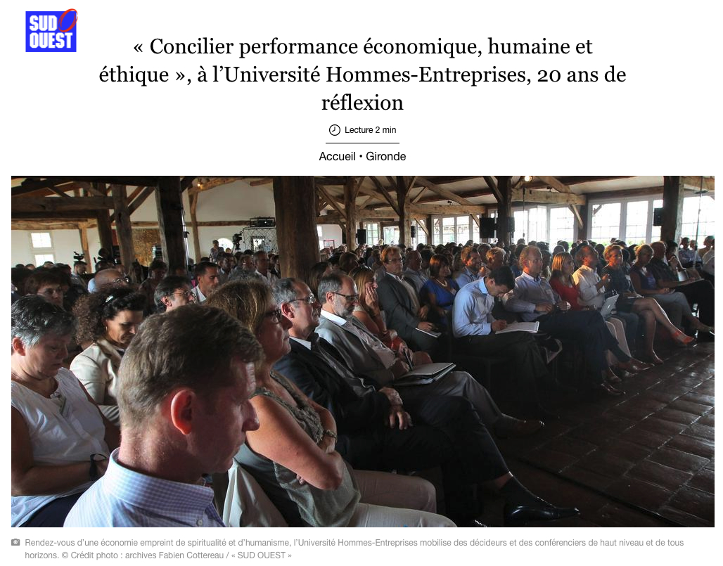 Dorine BOURNETON HUBERT JOLY Melanie LEVY THIEBAULT Christian CLOT Boris Cyrulnik Père Matthieu DAUCHEZ Emmanuelle DUEZ Olivier LAJOUS Sonia Mabrouk Enquête réalisée lors de l’édition 2023 auprès de 108 participants. L’Université Hommes-Entreprises : un évènement particulièrement apprécié des participants : 99.1% ont déclaré que cette édition correspondait à leurs attentes (et mieux que prévu pour 63.9%) 88.4% ont apprécié l’édition digitale 96.3% ont considéré que l’édition 2023 avait une valeur ajoutée par rapport à leurs préoccupations actuelles. … qui influe sur le management des participants : 73.1% des participants considèrent que cet évènement a une influence sur leur management ou sur leur organisation. Les médias en parlent Témoignages « J’ai passé deux jours intéressants, instructifs, pleins de belles surprises et de rencontres. Pour tout cela, MERCI !! Je vous dis donc à l’année prochaine car il est toujours bon de prendre du temps, d’autant que le lieu est magique !! Merci encore aussi pour toutes ces valeurs que vous transmettez » Laurent Rouvière « L’événement était comme d’habitude une vraie réussite. J’en suis repartie reboostée, remplie de joie avec beaucoup de choses positives à partager avec mes équipes, mon entourage et toutes les personnes que je croiserai tout au long de mon existence. J’y ai également rencontré de belles personnes et cela fait très plaisir. » Marie-Claire Kakpotia Moraldo « Merci et bravo à toute l’équipe pour cette remarquable organisation. C’était ma 1ère participation. J’y ai trouvé beaucoup de ressources, découvert et entendu de sacrés intervenants et réalisé beaucoup de rencontres et d’échanges passionnants. Comptez sur ma présence l’année prochaine ☺ ! » Ludovic Fauvarque « Ces conférences procurent des émotions qu’on ne n’imagine pas. Elles poussent à prendre le temps de réfléchir sur des sujets essentiels. Elles permettent de rencontrer des personnes tellement inspirantes. » Mélanie Drutel « Conférences et interventions réellement inspirante, qui est arrivée « au bon moment » dans ma vie » Mélanie Conges « Je ne connaissais pas le format puisqu’il s’agissait d’une première pour moi. Les interactions avec les conférenciers sont géniales, la proximité avec les membres également. En tant que manager, je ressors avec beaucoup d’informations qui vont me servir et je vous en remercie » Jimmy Salama Galerie de photos AG-1005 AG-1167 AG-1182 AG-1231 AG-1261 AG-1284 AG-1438 AG-1491 AG-1499 AG-1661 AG-1714 AG-1960 AG-2090 AG-2263 AG-2283 AG-2561 AG-2602 AG-2675 AG-3114 AG-3137 AG-3269 AG-3300 AG-3321 AG-3376 AG-3448 AG-3559 AG-3748 AG-4385 AG-4479